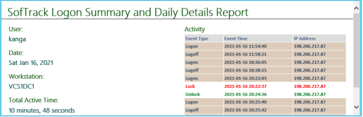 When viewing user logon activity, the intraday details can be directly exported for each selected date.